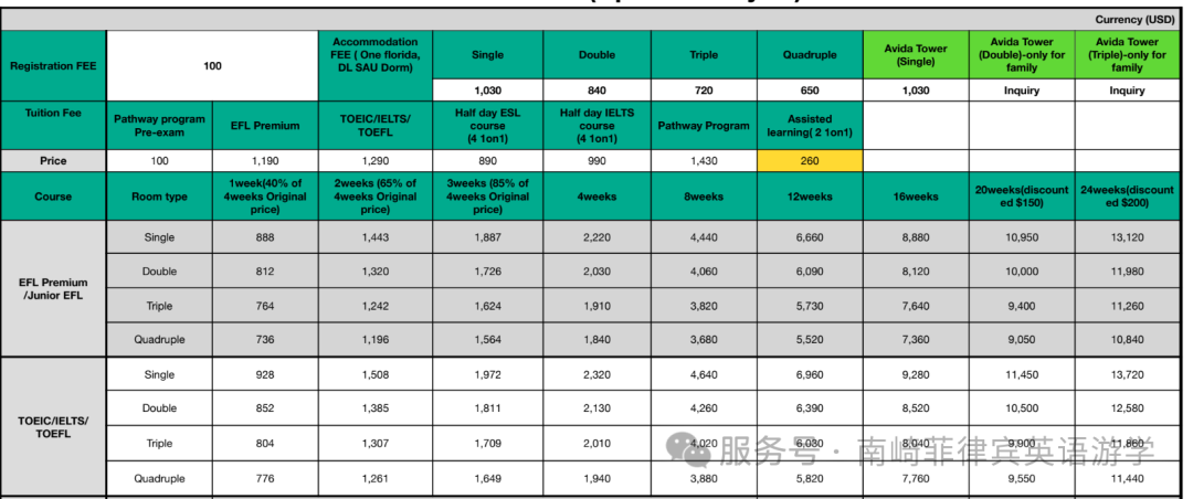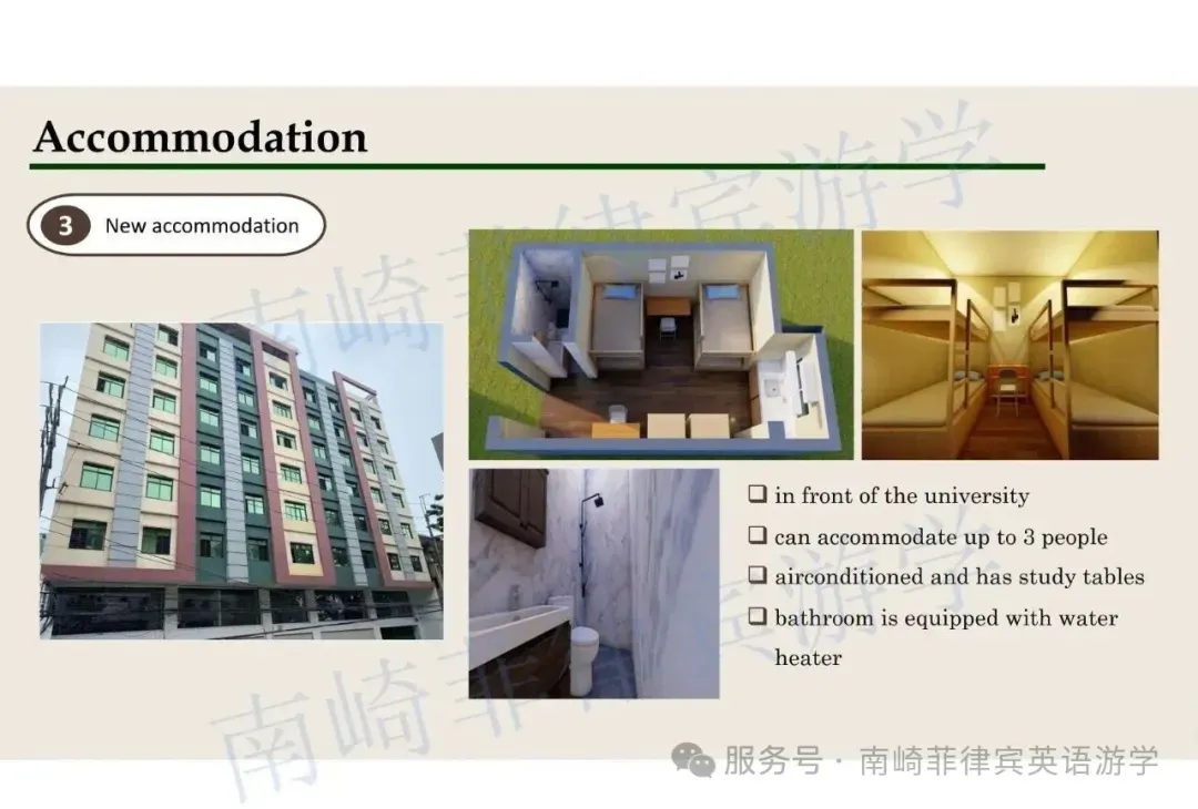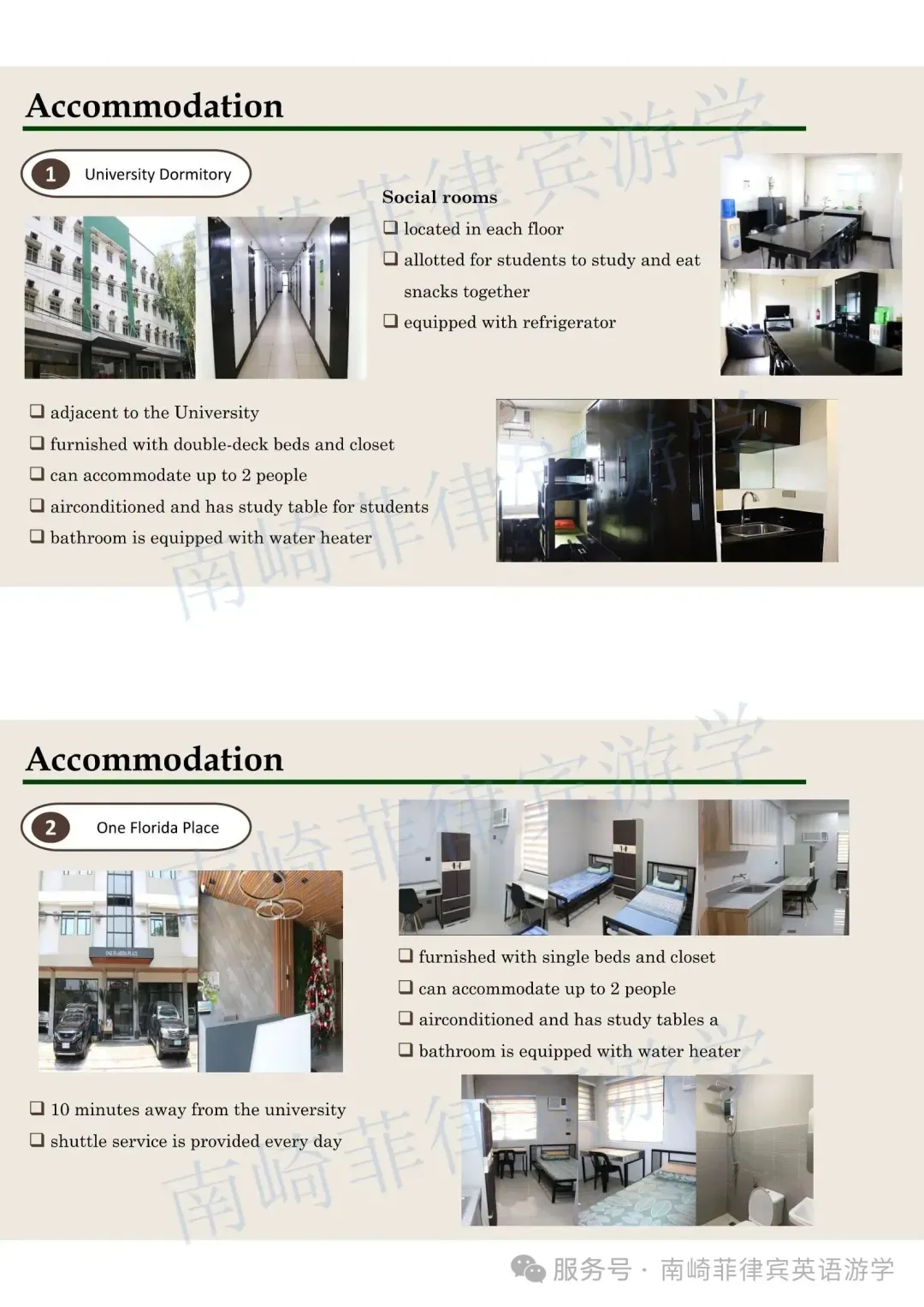 1~2人间位于附属宿舍或One Florida;3~4人间安排在新建宿舍。
