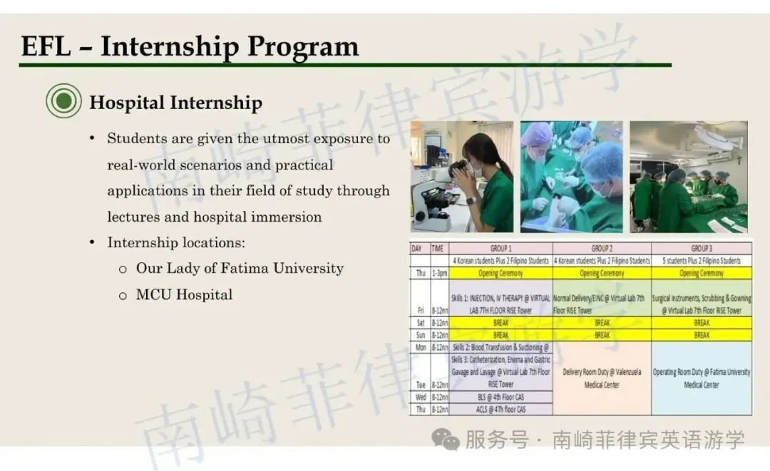 医疗实习 :与两所合作医院(Fatima Hospital、MCU Hospital)联动,为护理或医药专业学生提供实践机会。