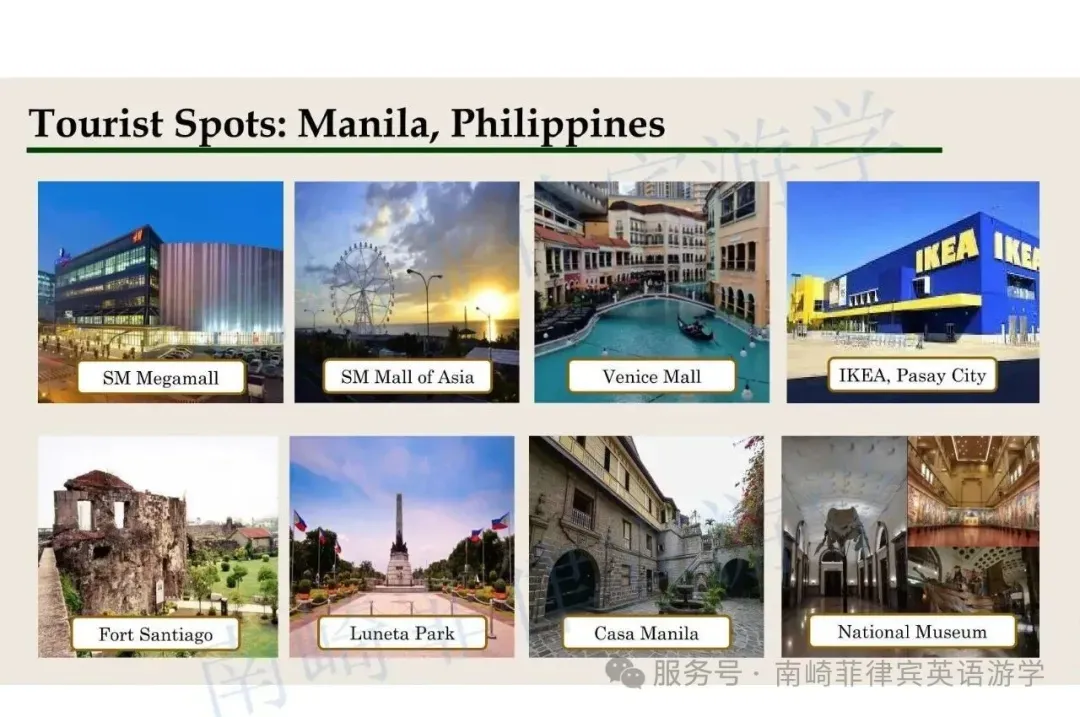 可利用周末旅行 学生可利用周末前往马尼拉市区、塔加泰(Tagaytay)、八打雁等地游玩。