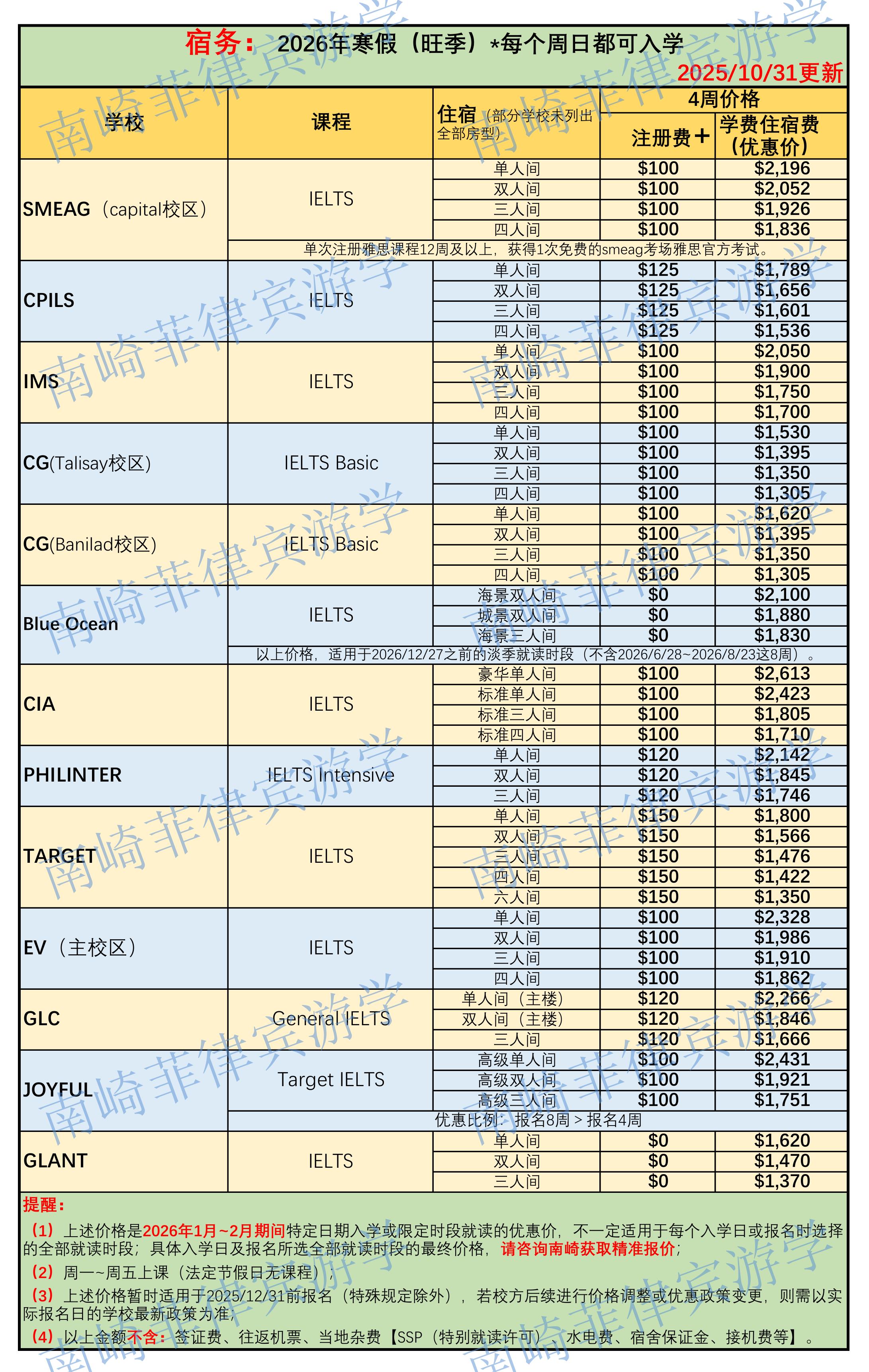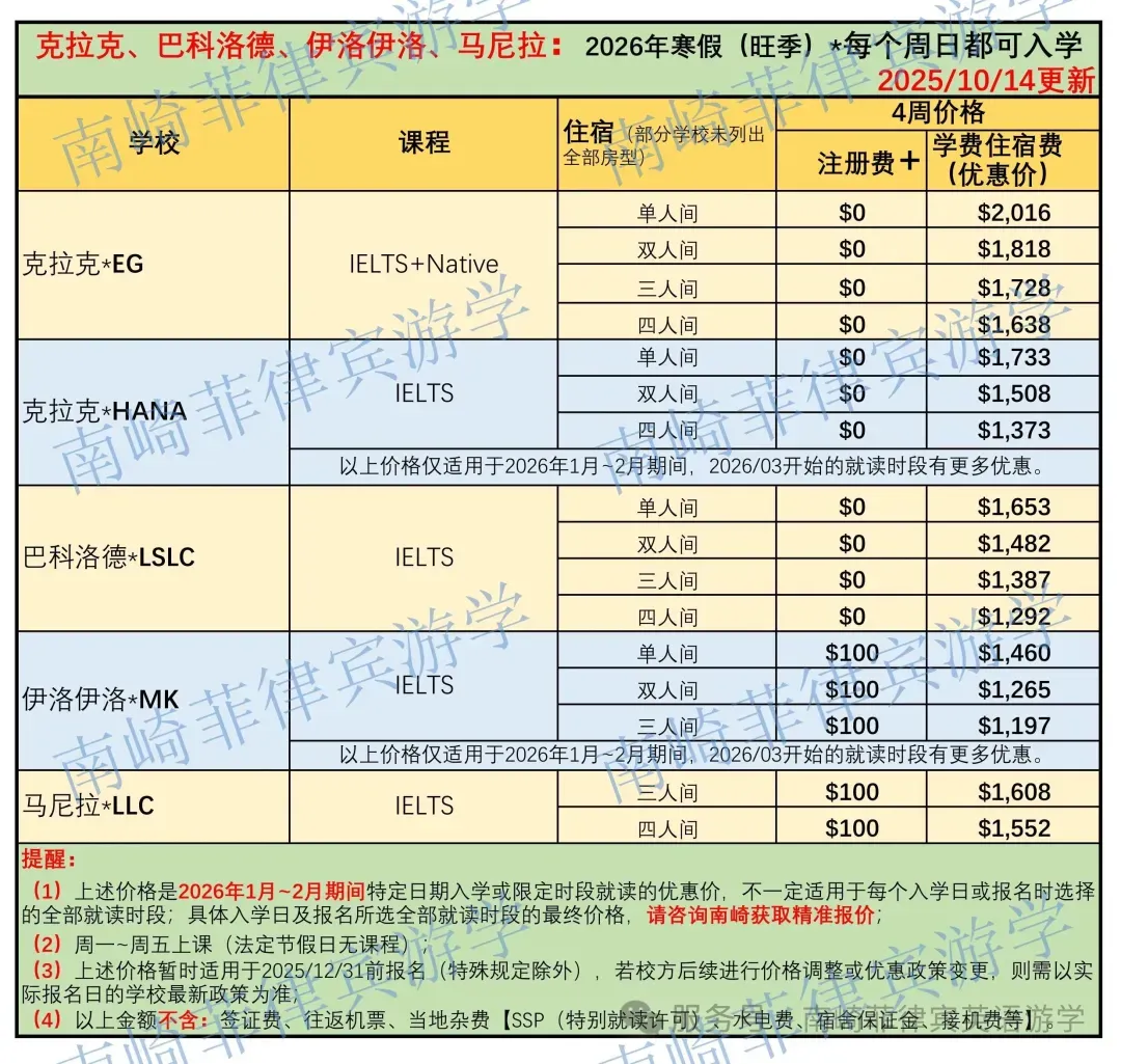 2026寒假菲律宾游学倒计时不到3个月! 计划寒假来菲律宾游学的成人同学,可参考南崎整理的各校信息:
