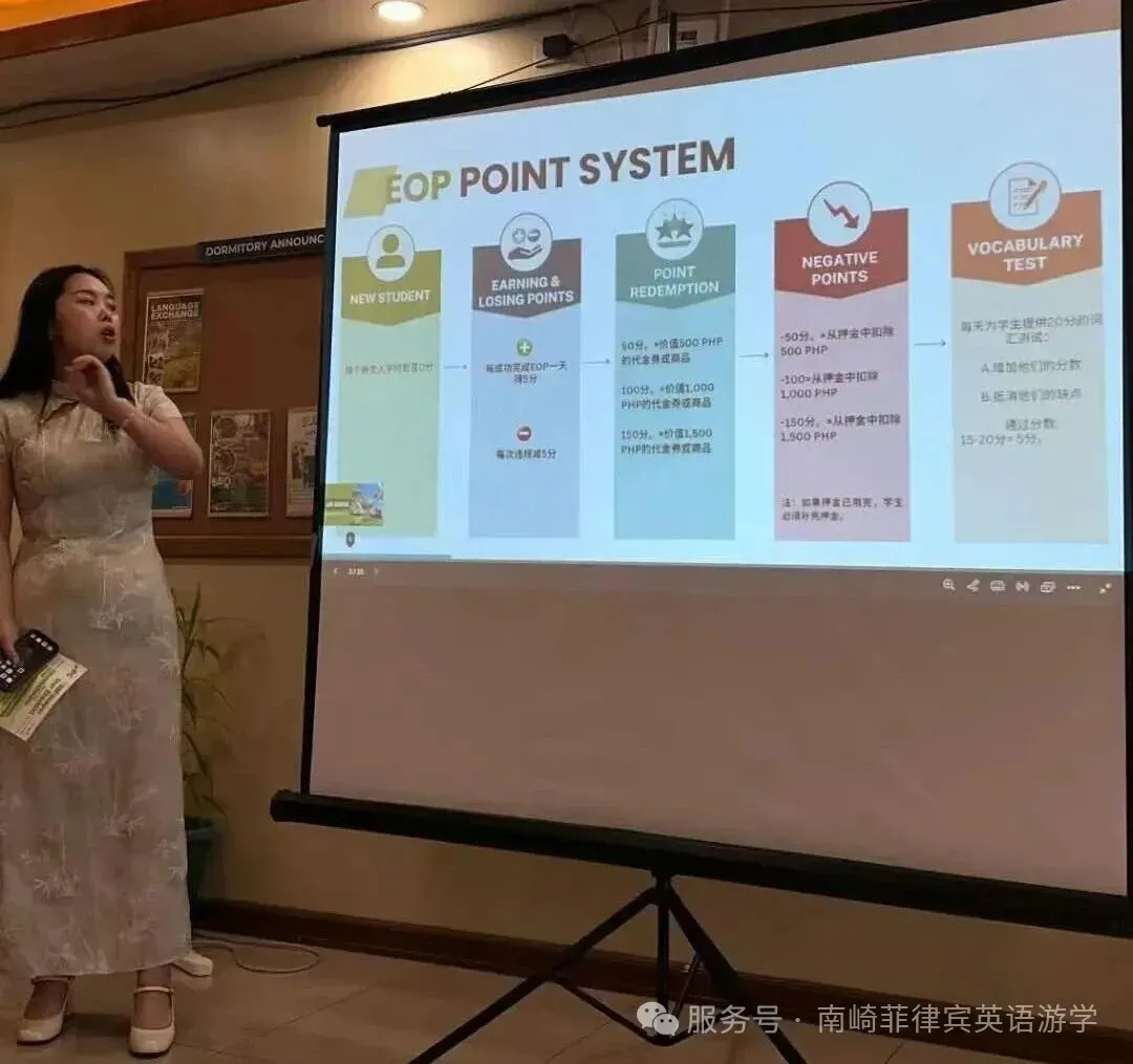 积分奖励制度: 每成功完成一天的EOP,可获得积分,累计的积分可以用于学校旅行、洗衣服务、校内商店、校内咖啡馆等7项服务。