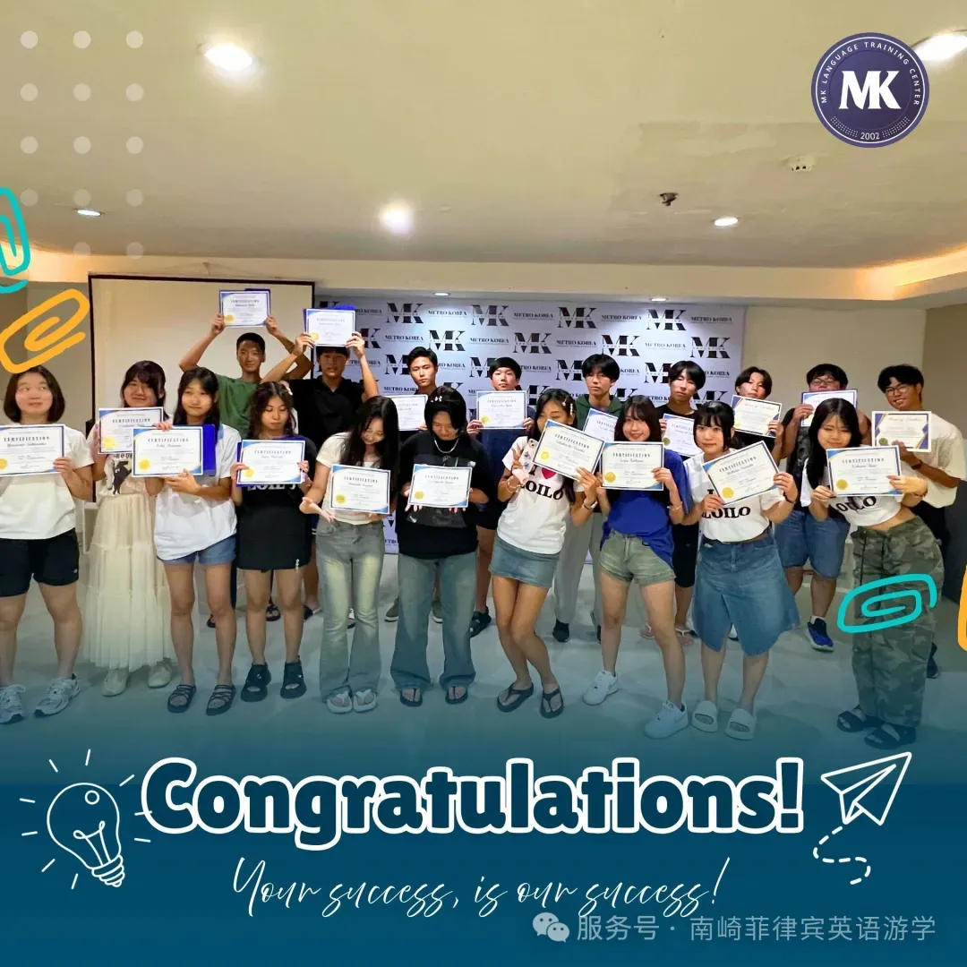 MK 这绝对非常小众!我们今年暑假推送了2位学员。一位出境非常曲折做了很多工作,另外一位是河北退休大姐,两位选择MK都是有自己的考虑---要去中国学生少且性价格比超高的地方!MK绝对是小众城市里的小众学校,学校里几乎没说中文的,适合独立、喜欢冒险的学生。毕业之际,河北大姐还特意来宿务见了阿南,我带她参观了不少学校,她说会宣传鼓动让身边的人也来菲律宾。
