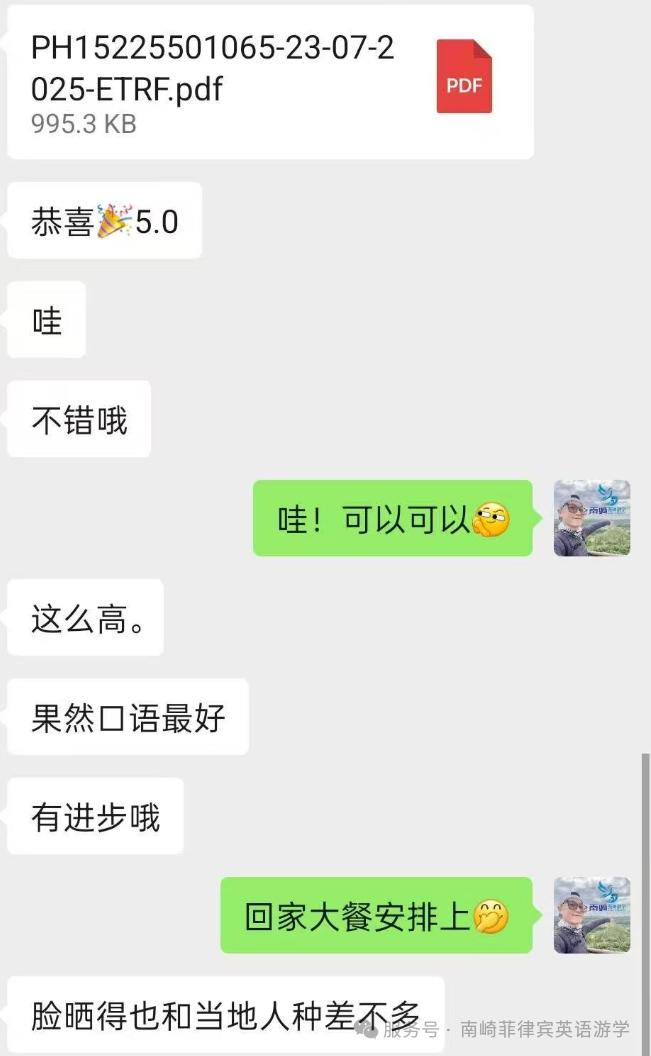 15岁学员在4周内从雅思4.5提升到5.0,中文经理john自己全程陪考,全菲律宾也没有这个级别的服务。