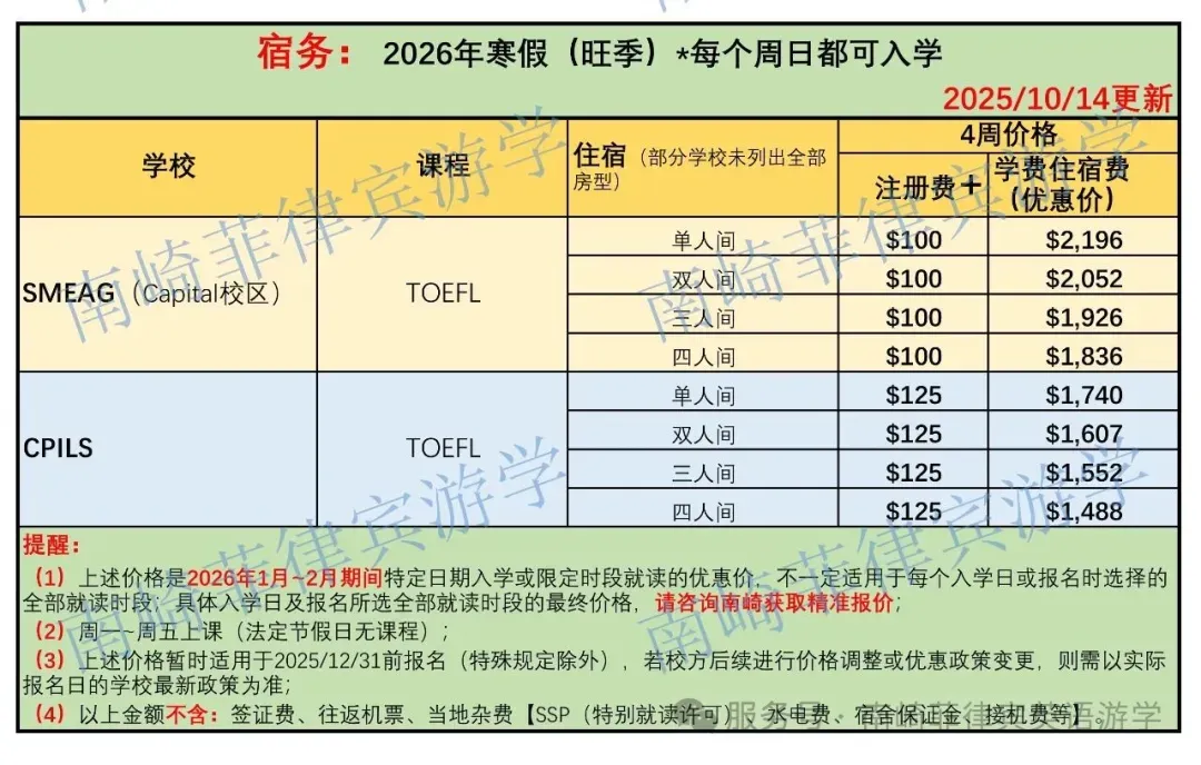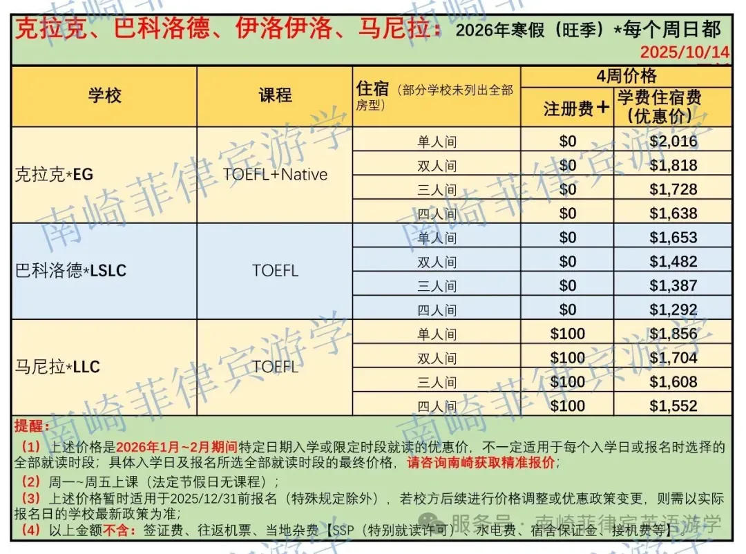 2026寒假菲律宾游学倒计时不到3个月! 计划寒假来菲律宾游学的成人同学,可参考南崎整理的各校信息:
