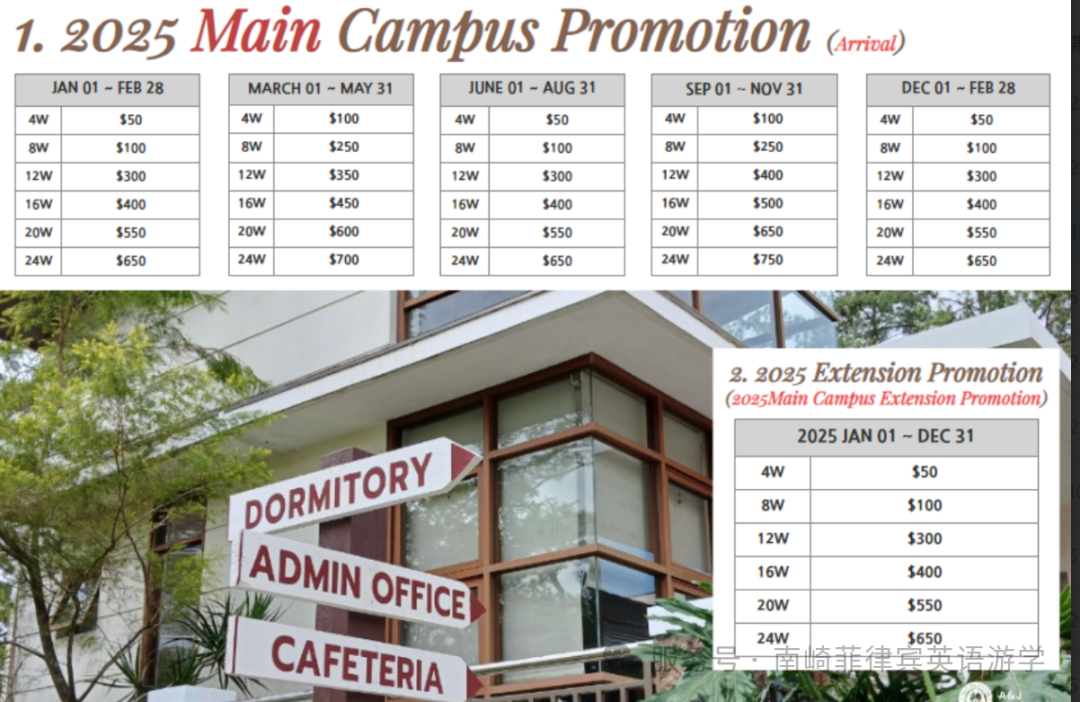 旺季价格 (如暑假):保分班约 1600~1800 USD / 4周(含学费、住宿、三餐)